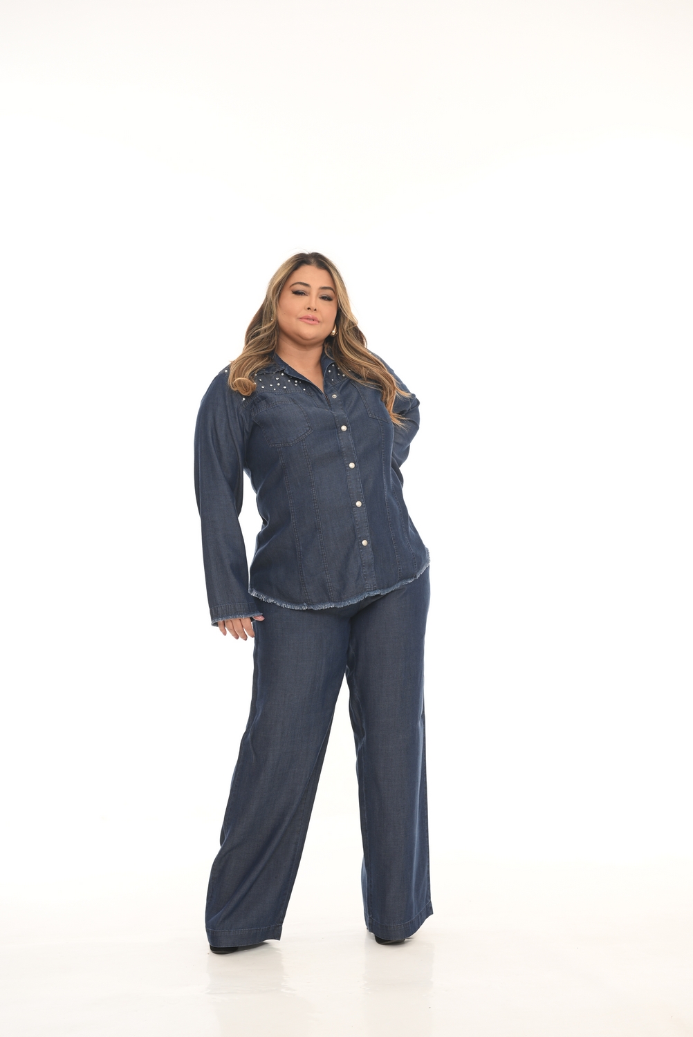 12440-BLUSA DECOTE V COM BORDADO 12446-PANTACUR COM BOLSO E VINCO