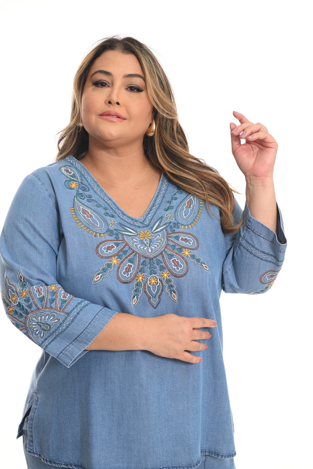 DECOTE12501-BLUSA DECOTE V COM BORDADO