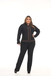 12437-BLUSA COM PUNHO MANGA CURTA 12438-CALCA COM DETALHE LATERAL E PUNHO 12526-CASAQUETO