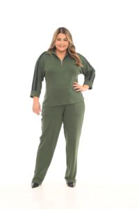 12531-BLUSA COM DETALHE MANGA 12533-CALCA COM ELÁSTICO E BOLSO