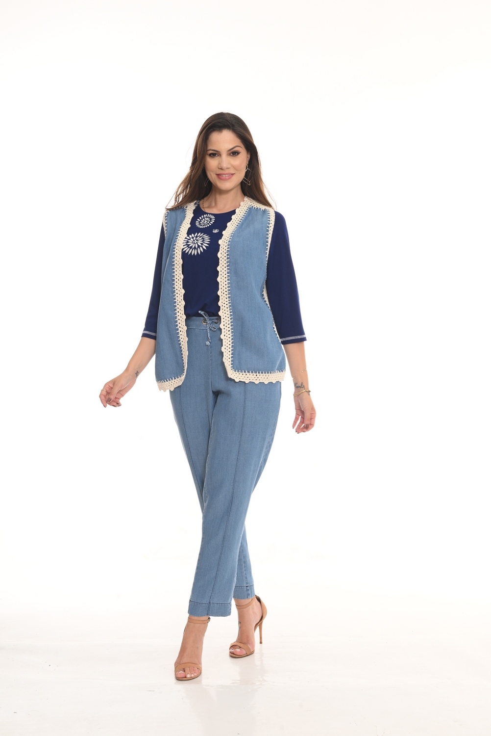 12445-COLETE COM CROCHE 12446-PANTACUR COM BOLSO E VINCO 12493-BLUSA COM BORDADO